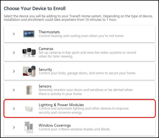 - Select Lighting & Power Modules.