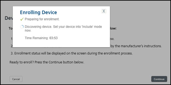 - The thermostat will display a 240-second (4-minute) countdown to complete enrollment. Please proceed to Step 2.