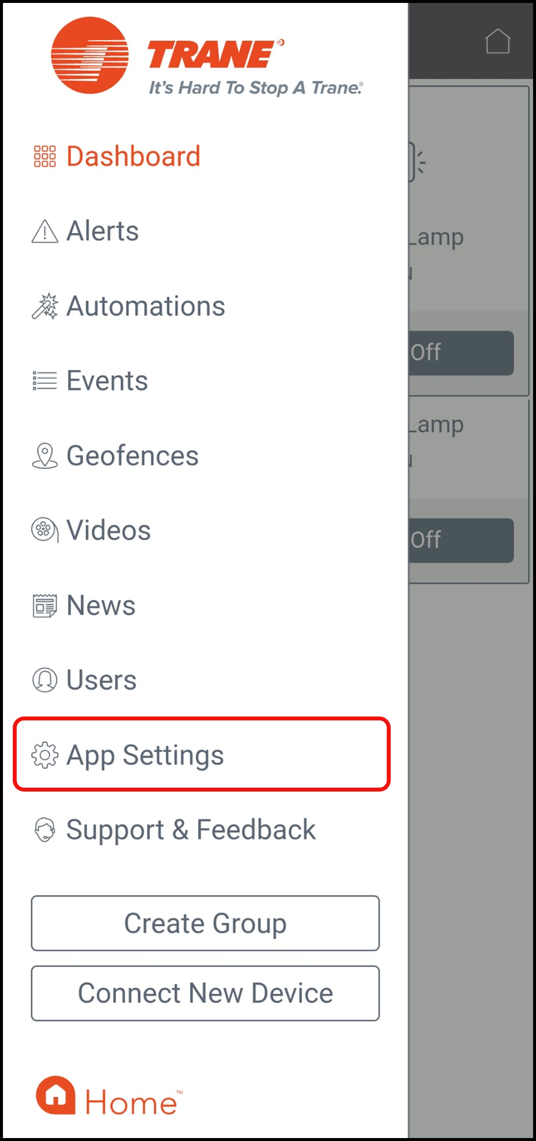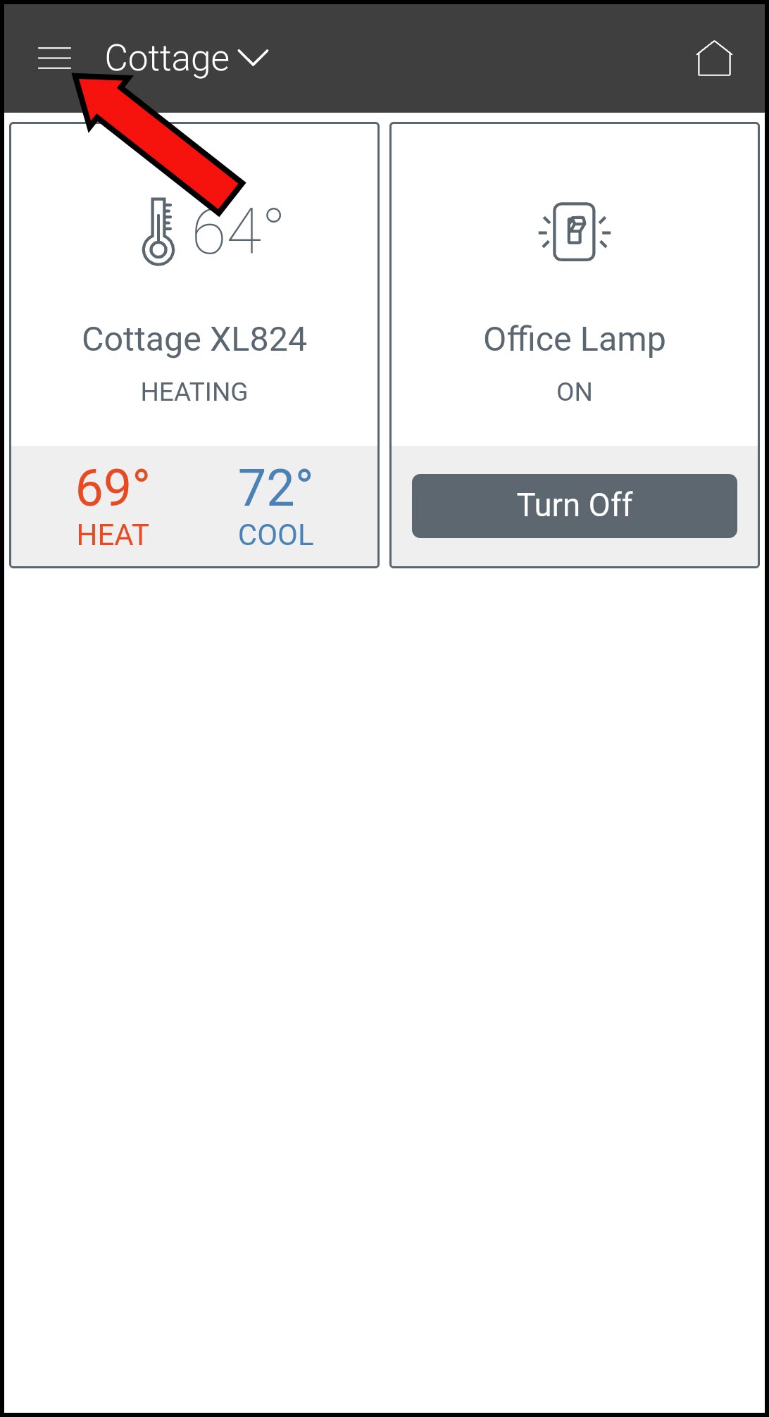 - Tap the Menu icon in the upper left corner of the app.