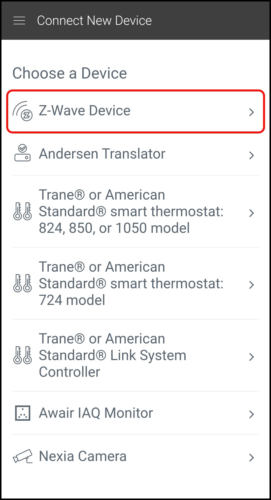 - Select Z-Wave Device.