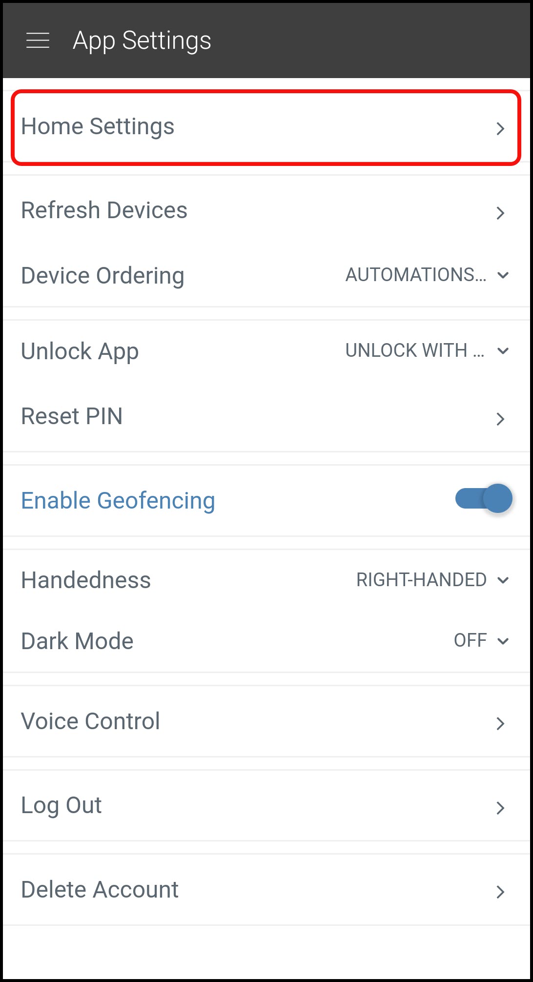 - Choose Home Settings.