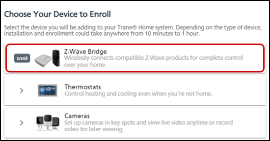 Select Enroll next to the Z-Wave Bridge option at the top of the list.