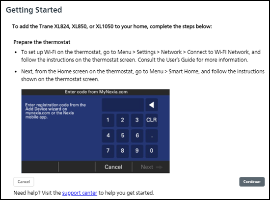 If you have any questions or need assistance, please contact Trane Home Customer Support via email at help@tranehome.com or call 1-877-288-7707, Monday-Friday 9 AM – 8 PM ET, and Saturday 10 AM – 5 PM ET.