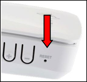 - Using a paper clip or similar object, press the RESET button for at least 5 seconds, then release it.