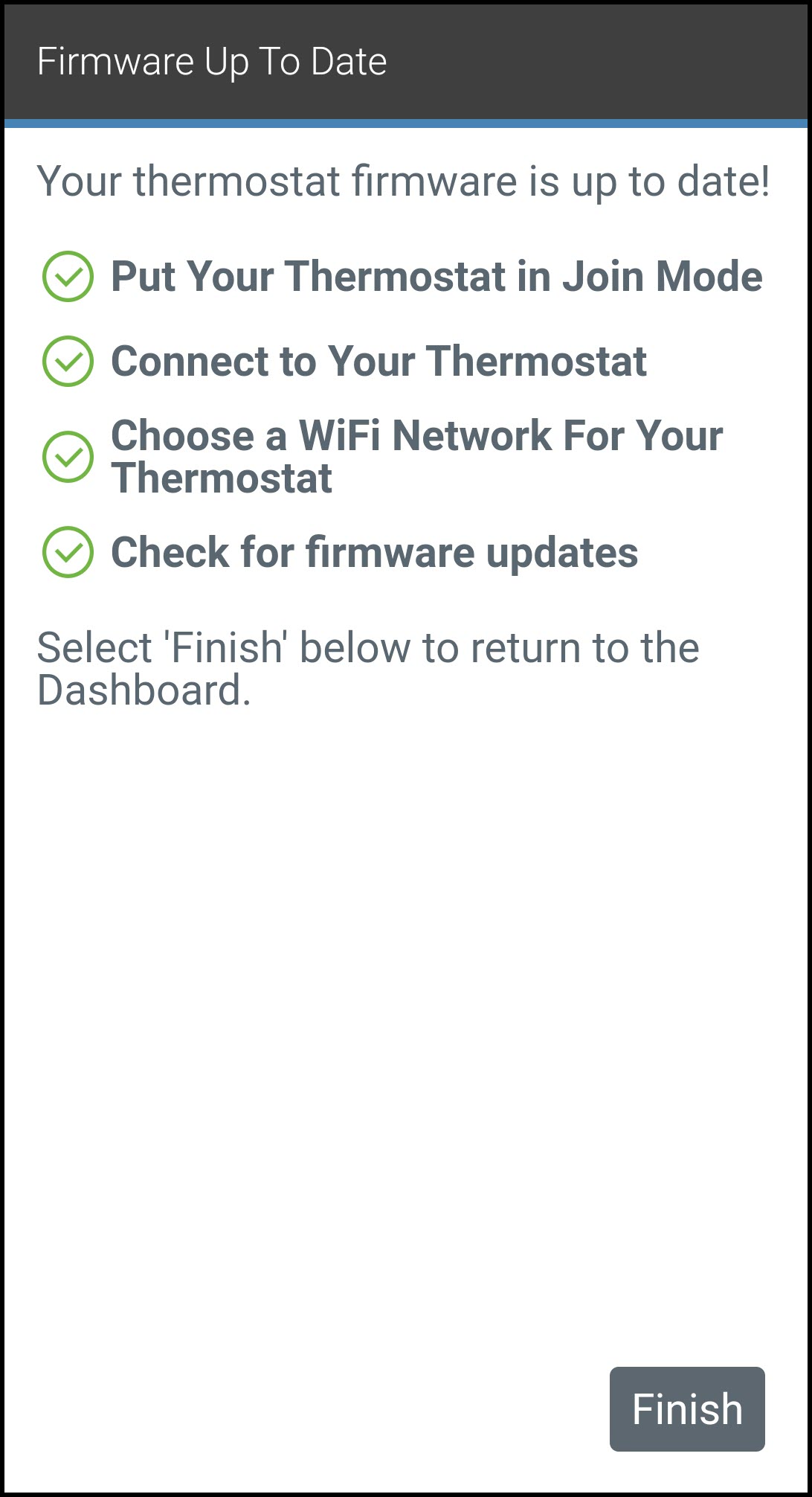 Your thermostat is now connected and ready for use. It will be assigned a name at install but you should rename it to something easily identifiable. Please see How to Rename Devices for more information.