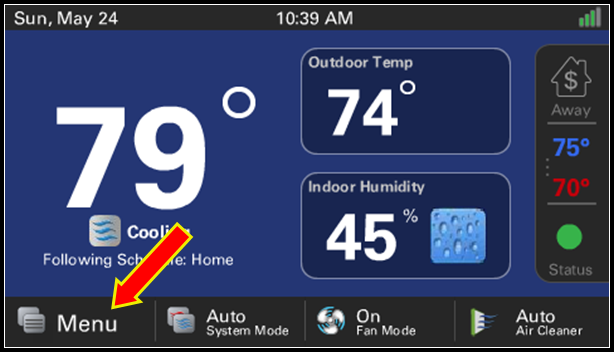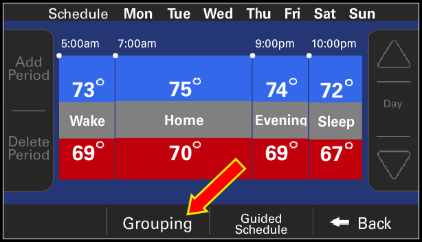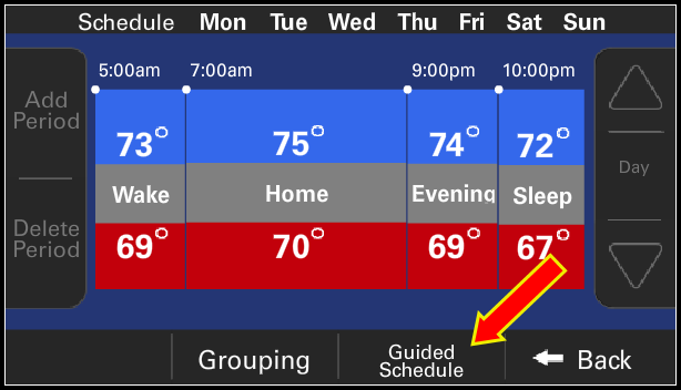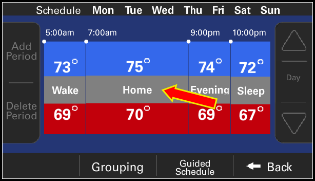 - Select which schedule you want to modify by clicking the Away, Home, or Sleep "house" icon.