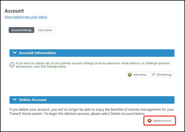 If you are experiencing technical issues with any Trane Home products, we encourage you to explore the Help Center or contact Trane Home Customer Support before canceling your account.