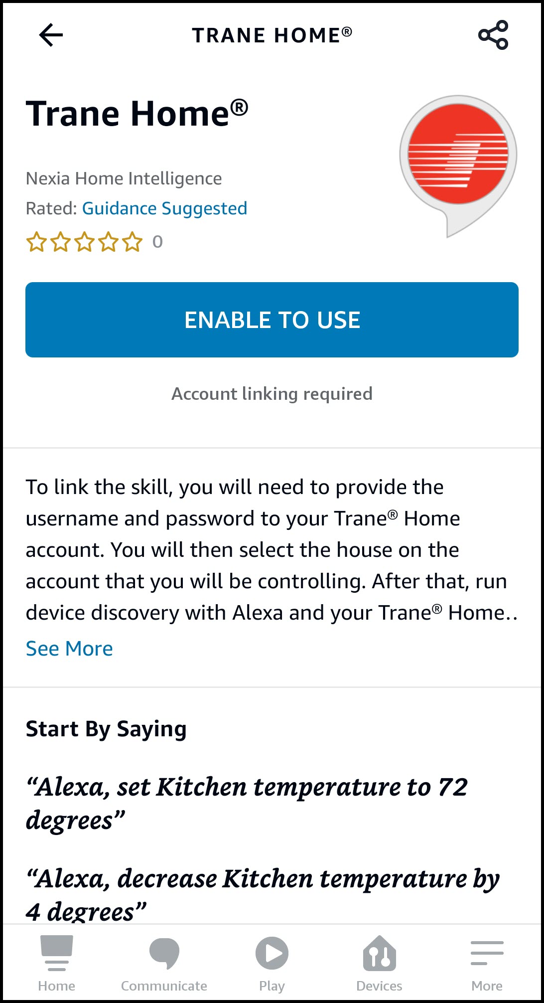 Linking Trane® Home to Amazon Echo™ (Alexa™)