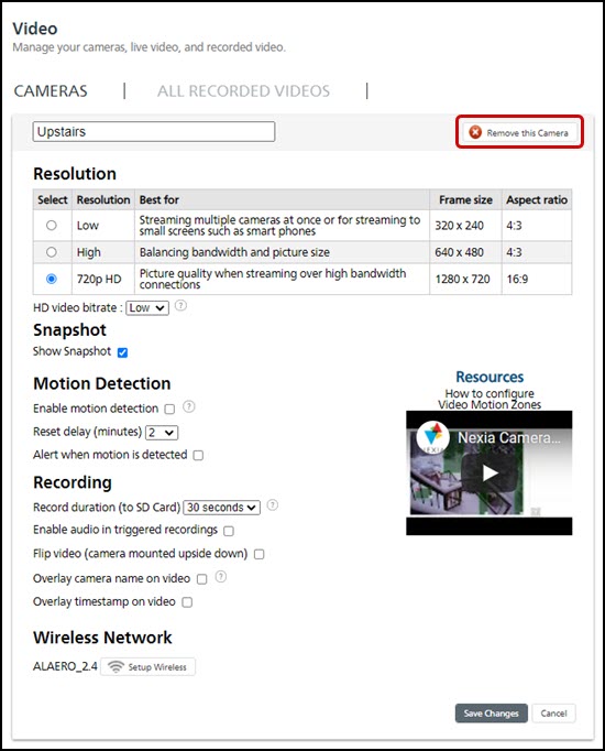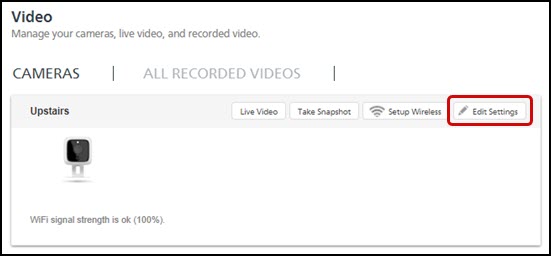 - Locate the camera that you want to remove and press Edit Settings to the right of the camera's name.