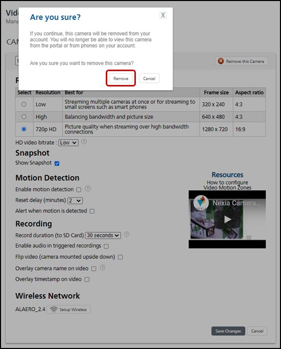 To remove a camera from your account, follow the instructions below. This must be done from the web portal. A camera cannot be removed using the mobile app.