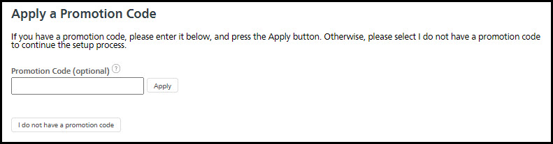 If you do not have a promotion code, click I do not have a promotion code to complete registration.