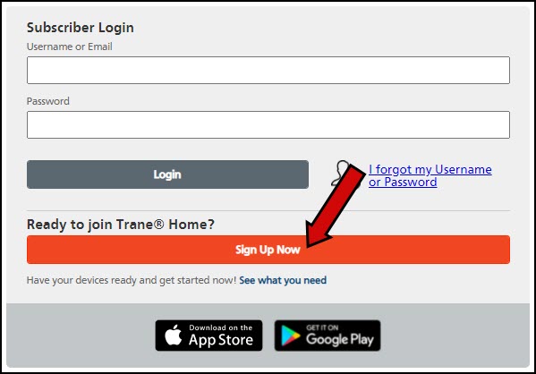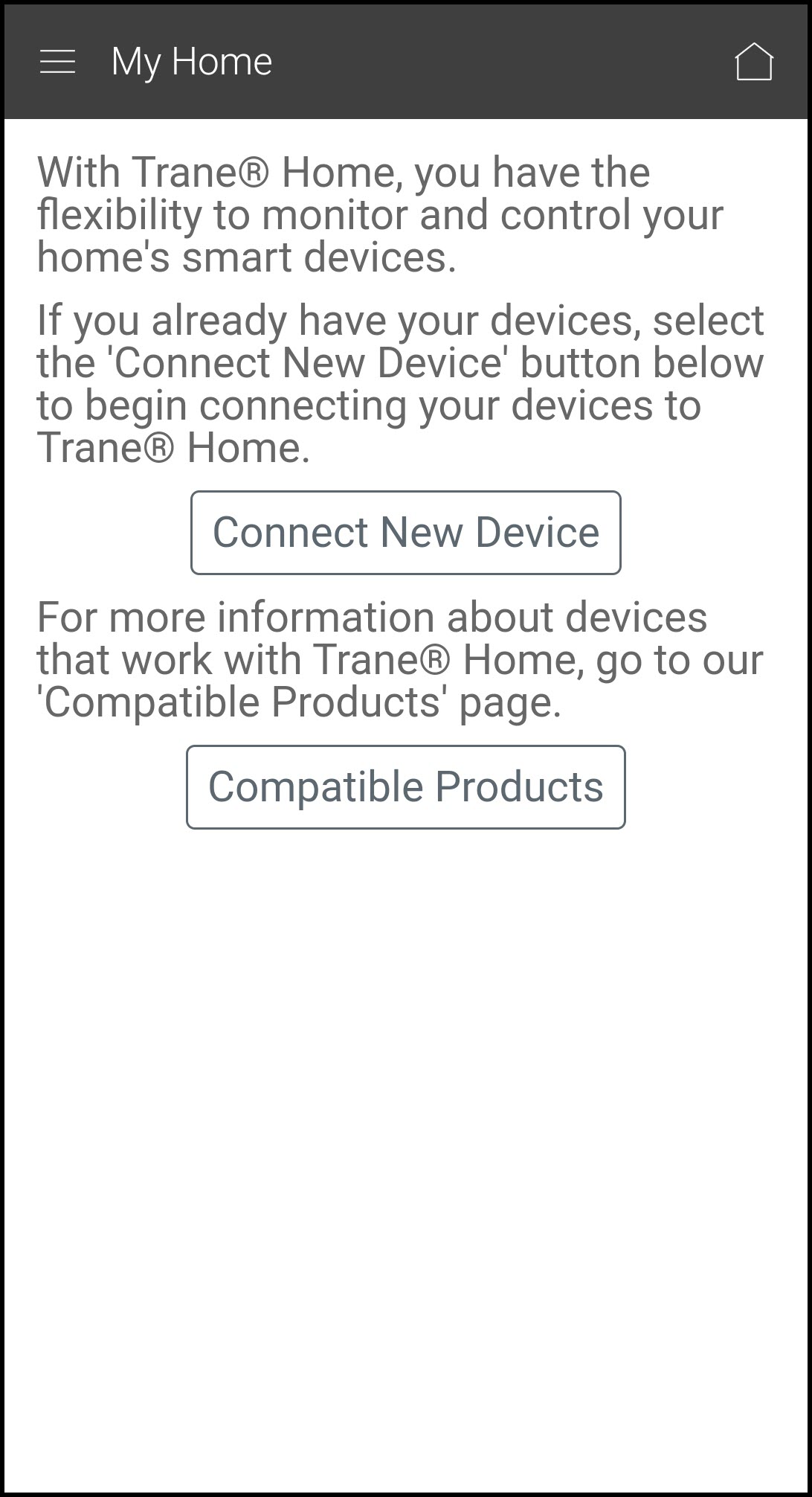 You must create a Trane Home account in order to connect and control your Trane Home-enabled devices. It is recommended that you create your account using the Trane Home web portal, but it is also possible to create an account using the Trane Home mobile app.