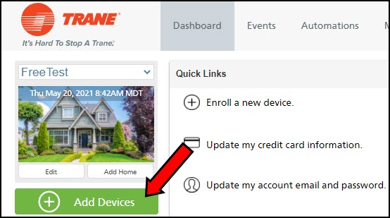 - Log into the Trane Home web portal.