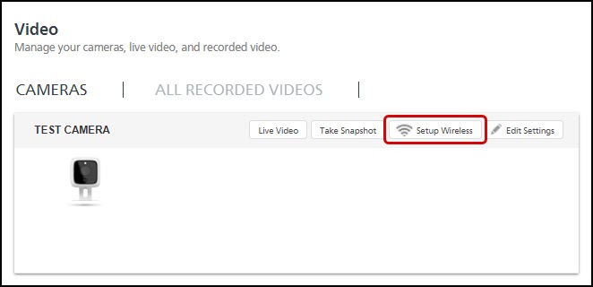 You should now see the camera with its new name and some option buttons. Press Setup Wireless to the right of the camera name.
