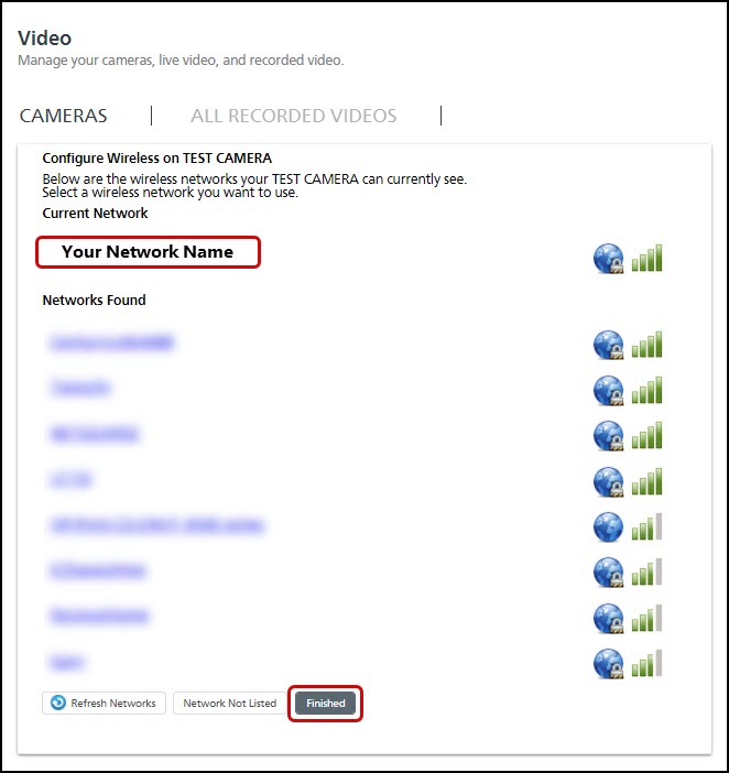You will now see your network at the top under Current Network. Press Finished.