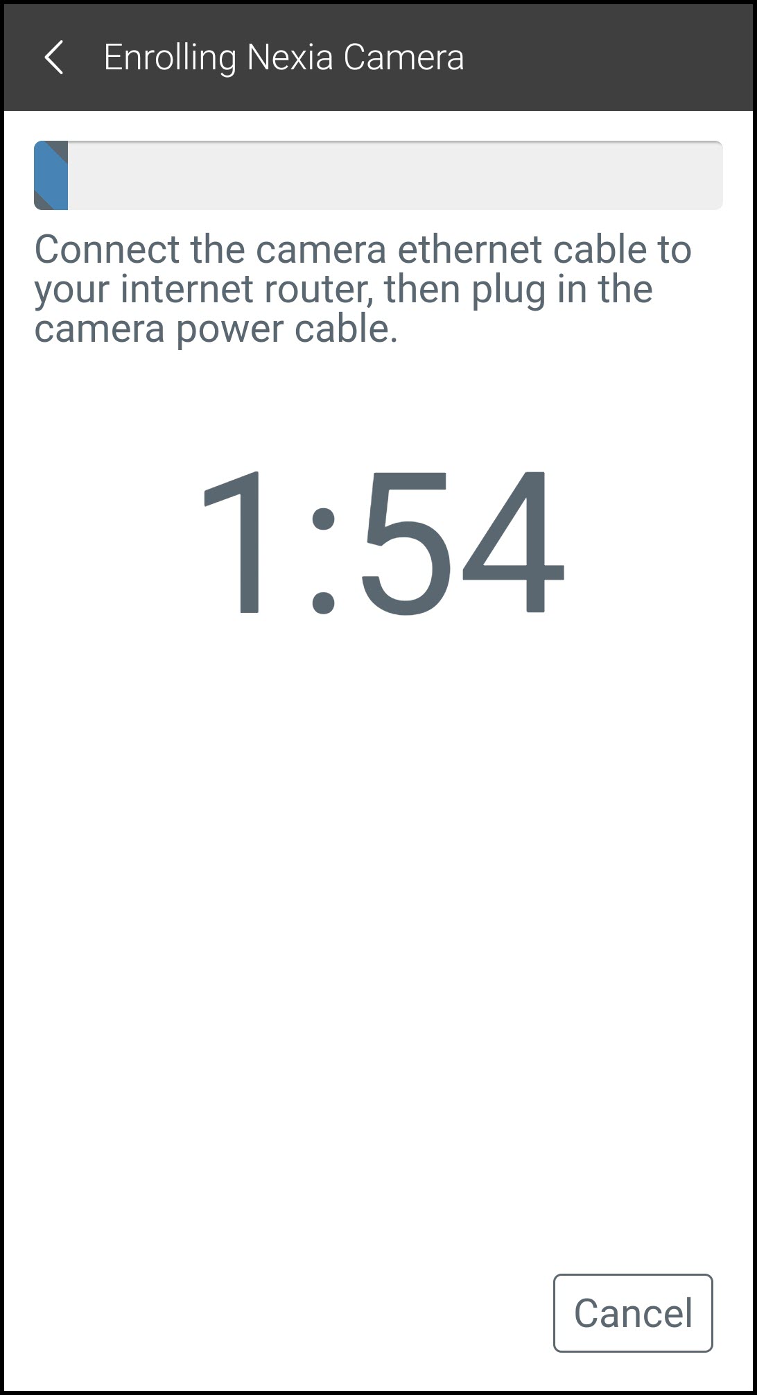 - Once the camera is connected to Ethernet and power, the system will complete the enrollment. You can watch the progress in the app.