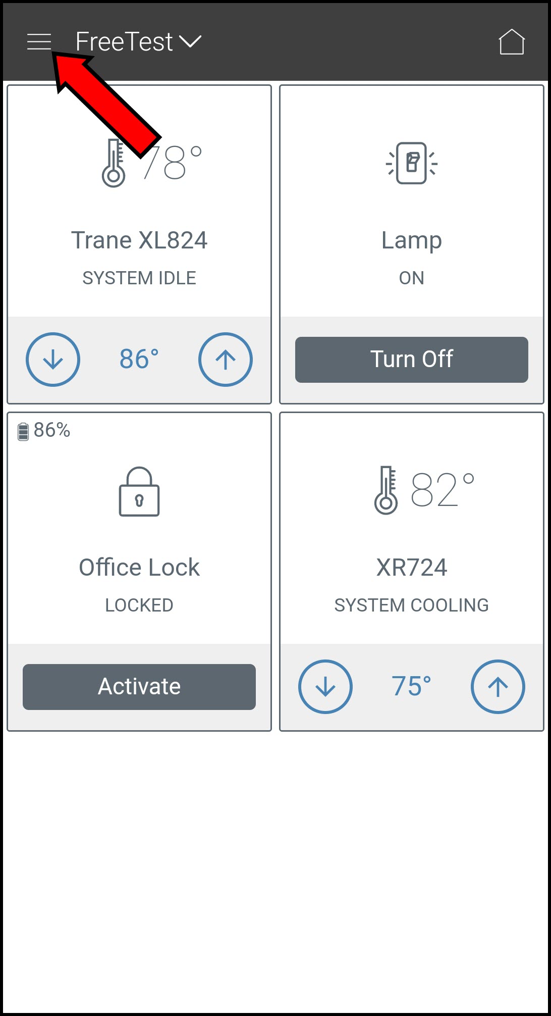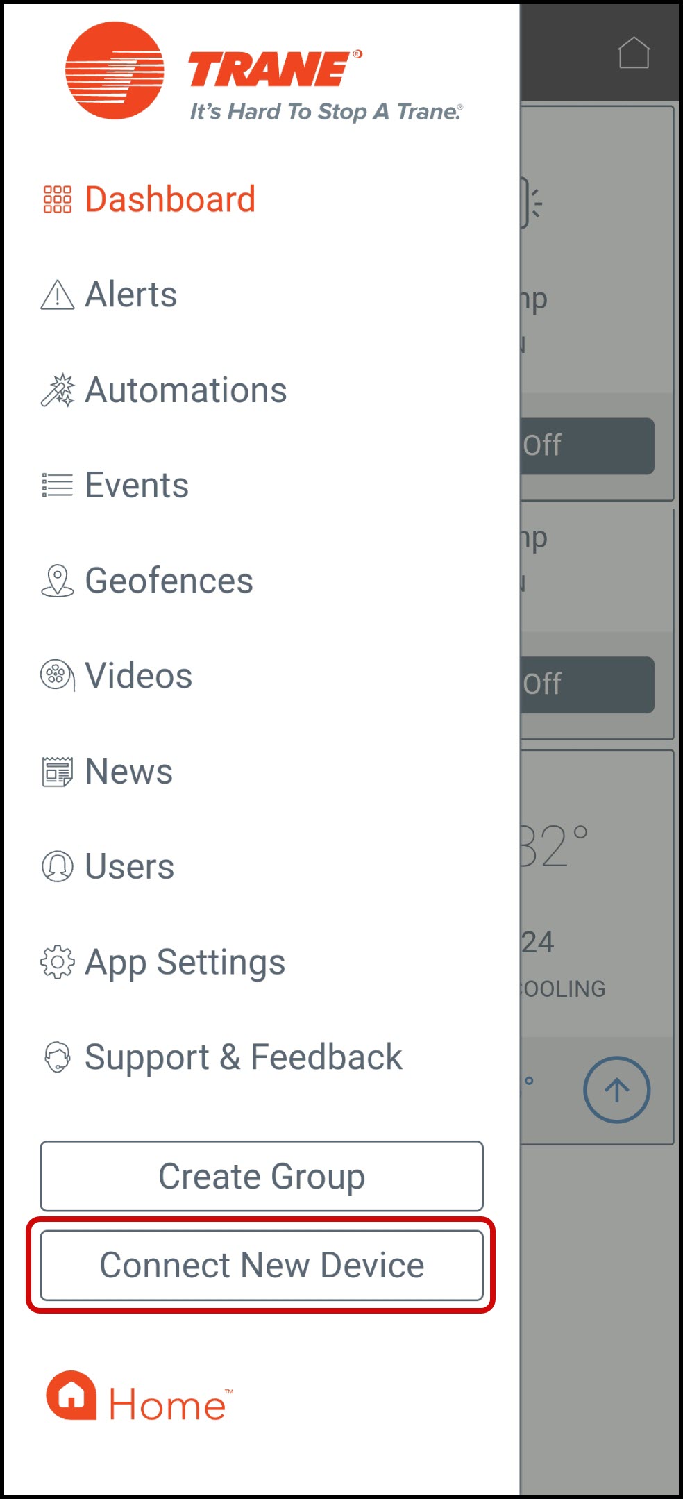 - Log into the Trane Home mobile app.
