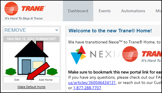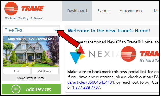 - Log into the Trane Home web portal.